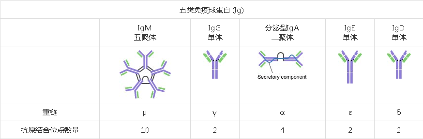 總而言之,五種人類 Ig 類別通過重鏈類型進行區(qū)分,并且它們的功能并不完全相同。