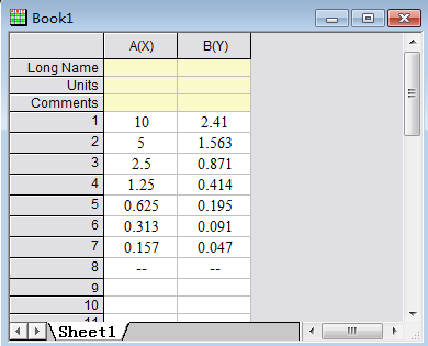 選擇第 4 個工作表(Fit NLF Find X from Y1),在左欄輸入或復(fù)制樣品的 OD 值,將自動計算濃度。