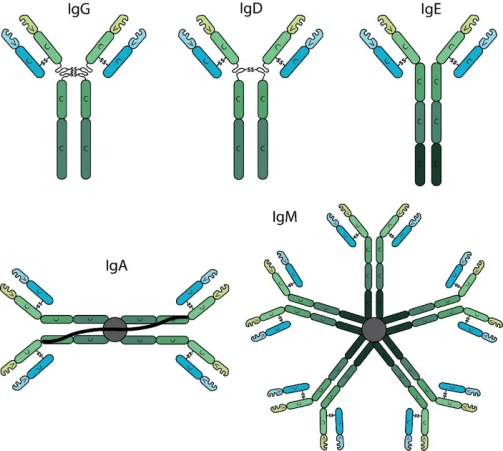 IgD(免疫球蛋白D): IgD是了解最少的抗體類型,可能在B細(xì)胞發(fā)育和激活中發(fā)揮作用。IgD存在于B細(xì)胞表面,據(jù)報道在誘導(dǎo)抗體產(chǎn)生和預(yù)防呼吸道感染方面發(fā)揮作用。這種同工型占血液中所有人類免疫球蛋白的70-75%。