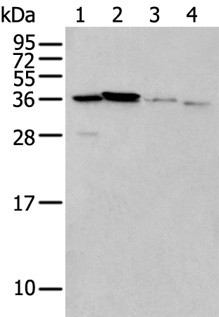 Hela and 293T cell,Mouse brain tissue and Human kidney tissue lysates |