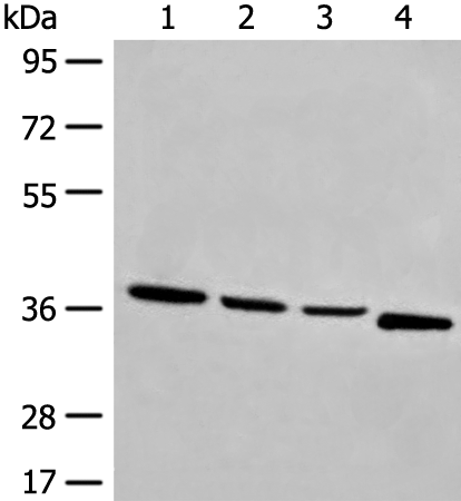 Human breast cancer tissue, TM4, 231 and Jurkat cell lysates |