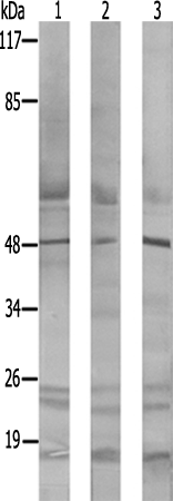 HepG2 cells, Hela cells and Jurkat cells lysates |