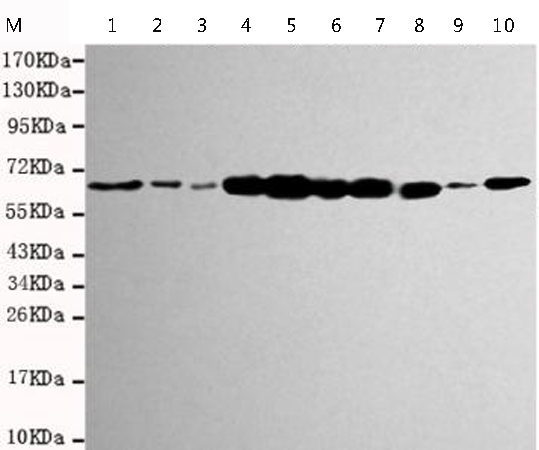 HepG2, Hela, SVT2, A549, COS7, MDCK, PC12, MCF-7 cell lysates |