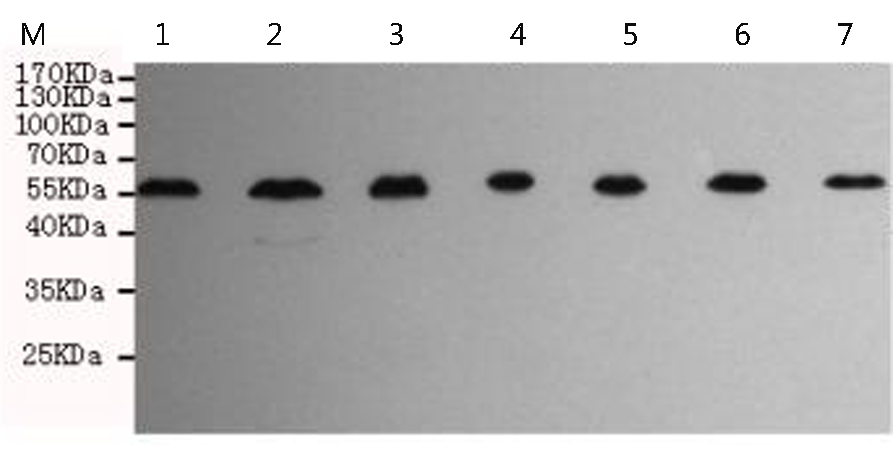 Jurkat cell, Rat brain tissue, CHO-K1, COS7, C6, 3T3 and Hela cell lysates |