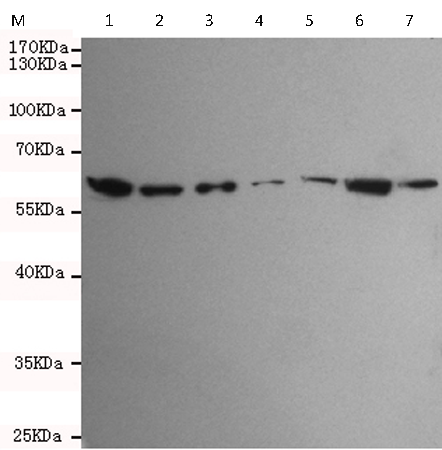 HCT116, SW480, HepG2, A549, Jurkat, K562 and Hela cell lysates |