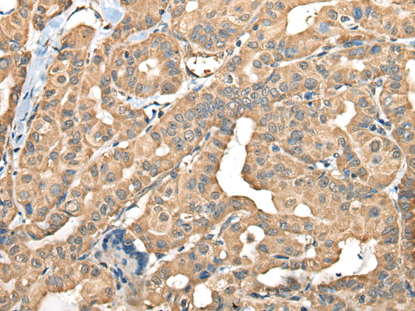 FAM110B (Familiarity with sequence similarity 110, member B) is a 370 amino acid protein, which contains several motifs that are conserved among FAM110 family members and a proline-rich region through which it probably binds proteins. Localized to the nucleus where they associate with centrosomes, FAM110A, FAM110B and FAM110C accumulate at the spindle poles during mitosis. Expression of FAM110B and FAM110C impairs cell cycle progression through G1 phase. FAM110B is expressed in testis, thyroid and spleen and is found at lower levels in ovary, adrenal gland, stomach, trachea, intestine, lymph node, spinal cord and prostate. The gene encoding FAM110B maps to human chromosome 8, which is made up of nearly 146 million bases and encodes about 800 genes. Chromosome 8 is also associated with Pfeiffer syndrome, congenital hypothyroidism and Waardenburg syndrome. May be involved in tumor progression. |