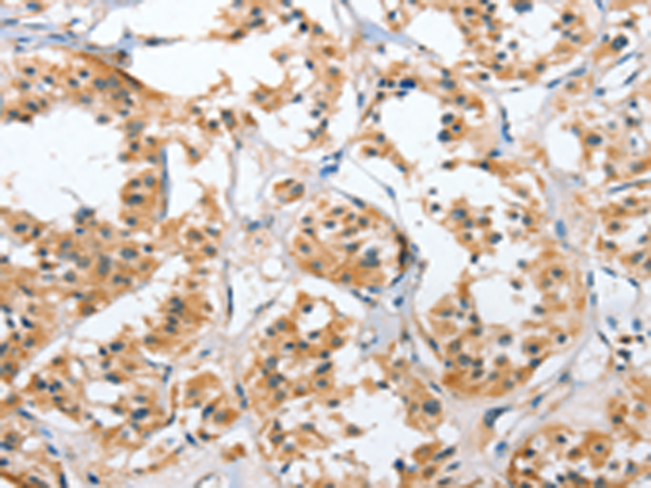 Glycosphingolipids (GSLs) are a group of membrane components that contain lipid and sugar moieties. They are present in essentially all animal cells and are believed to have important roles in various cellular processes. UDP-glucose ceramide glucosyltransferase catalyzes the first glycosylation step in glycosphingolipid biosynthesis. The product, glucosylceramide, is the core structure of more than 300 GSLs. UGCG is widely expressed and transcription is upregulated during keratinocyte differentiation. |