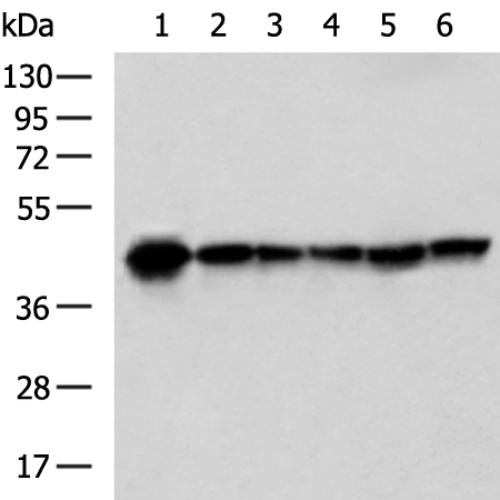 Mouse brain tissue, HepG2, Hela, A549 cell, Mouse skeletal muscle tissue, NIH/3T3 cell lysates |