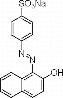其他中文名稱 : 橙黃Ⅱ;金橙Ⅱ;酸性金黃II;2-萘酚偶氮對苯磺酸鈉;二號(hào)橙;桔黃Ⅱ;酸性橙;β-萘酚橙;酸性二號(hào)橙;酸性橙7;4-(2-羥基-1-萘偶氮)苯磺酸鈉鹽;金蓮橙OOO;β-萘酚偶氮對苯磺酸鈉;金黃粉;2-萘酚偶氮對苯磺酸鈉