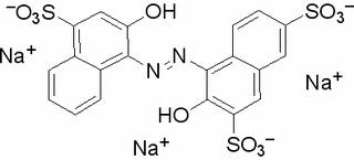 其他英文名稱 : 1-(2-Hydroxy-4-sulfo-1-naphthylazo)-2-naphthol-3,6-disulfonic acid trisodium salt;3-Hydroxy-4-(2-hydroxy-4-sulfo-1-naphthylazo)naphthalene-2,7-disulfonic acid trisodium salt