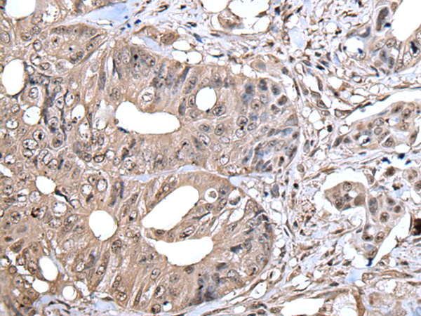 Focal adhesions are actin-rich structures that enable cells to adhere to the extracellular matrix and at which protein complexes involved in signal transduction assemble. Zyxin is a zinc-binding phosphoprotein that concentrates at focal adhesions and along the actin cytoskeleton. Zyxin has an N-terminal proline-rich domain and three LIM domains in its C-terminal half. The proline-rich domain may interact with SH3 domains of proteins involved in signal transduction pathways while the LIM domains are likely involved in protein-protein binding. Zyxin may function as a messenger in the signal transduction pathway that mediates adhesion-stimulated changes in gene expression and may modulate the cytoskeletal organization of actin bundles. Alternative splicing results in multiple transcript variants that encode the same isoform. |