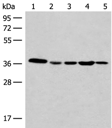 HT-29, HepG2, 293T, Jurkat and HeLa cell lysates |